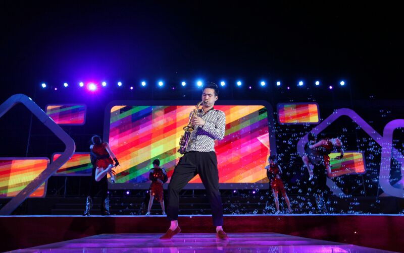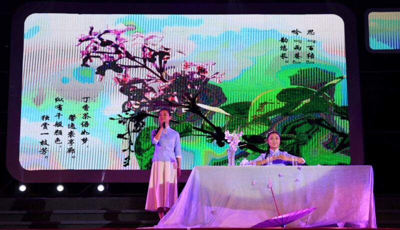 南苑操场灯光璀璨、近万名师生齐聚一堂,用充满青春活力的歌曲和舞蹈迎接新学年的到来。晚会在开场舞《青春秀》中拉开帷幕,动感热辣的舞蹈,引爆了全场氛围。萨克斯独奏《pick up the pieces》潇洒娴熟、节奏感十足,土家风情舞蹈《嗯哪嗯》民族特色浓郁,小提琴独奏《默》悦耳动听、韵味十足,茶艺表演《丁香茶语》中优雅的舞姿、娴熟的技艺让人拍手称妙,女声独唱《price tag》、情景歌舞《see you again》引发了现场师生的共鸣。此外,还有二胡独奏《二泉映月》、街舞表演《舞出人生》等多种表演形式,展现了新时代大学生的无限激情与魅力。