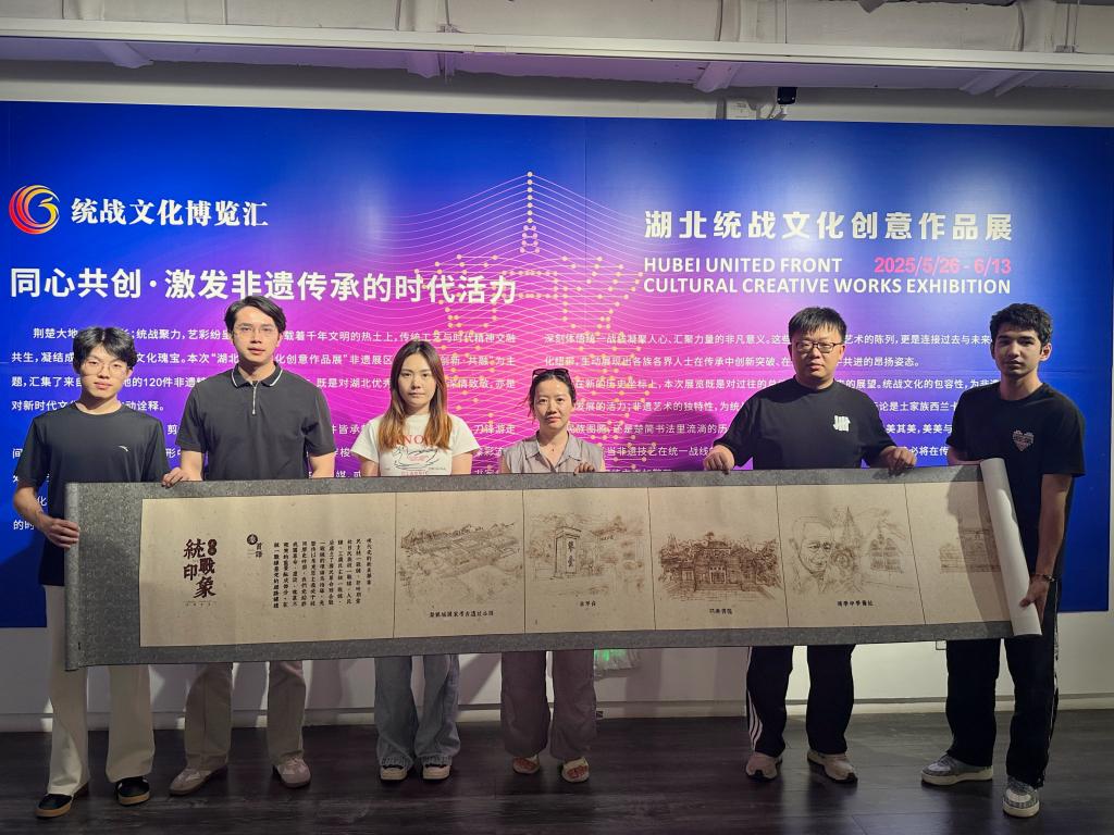入选作品由胡宇、丁家豪、崔博文、陈晨4名教师带领20余名学生历时2周共同完成。12米长卷选取21个跨越古今的武汉市统战文化地标性建筑,通过非遗烙画方式进行创作。以烙画特有的烙痕,表现历经岁月洗礼的历史记忆。盘龙城遗址、古琴台、起义门、江汉关、农讲所、五大会址、汉润里、海光农圃等地标有着中华民族文化认同的见证,更彰显统一战线在我国革命、建设、改革不同历史时期所发挥重要作用。非物质文化遗产是荆楚文化的活态基因,是引导青年一代了解统战历史与面向未来奋进的重要纽带。