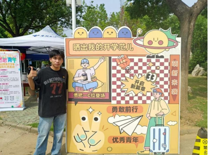 2025级轮机(3)班新生王运幸在迎新点打卡照片