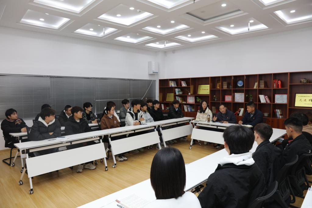 校长周慎携校团委副书记李朝钦、智能制造学院团总支书记谢芳,与来自智能制造学院30余名各年级学生代表围坐一堂,在追忆校史荣光、凝聚荣校共识的同时,与学生面对面交流学业困惑、生活点滴,倾听成长诉求、指导发展规划。