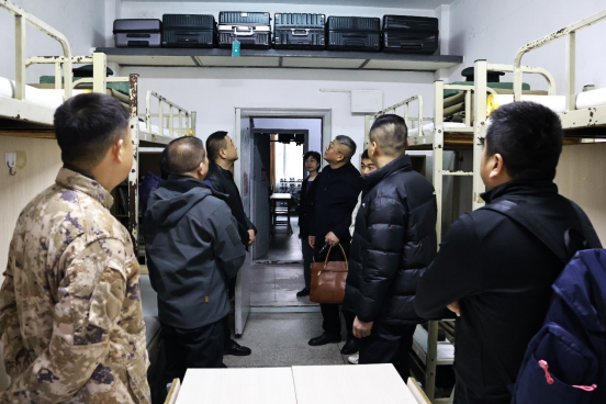 会前,李银仕一行实地走访学校军士楼及“一站式”学生社区,直观察看了军士生生活保障条件与社区服务建设成效,深入了解军士生日常起居管理与社区育人阵地建设情况。