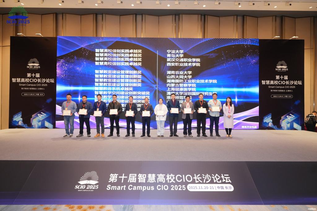新闻网讯(通讯员 梅文涵)11月20日,由智慧高校CIO信息化专业委员会举办的“第十届智慧高校CIO论坛”在湖南长沙成功举办。在论坛备受瞩目的“凌云奖”评选活动中,我校凭借扎实工作和突出成效,荣获“智慧高校信创实践卓越奖”。