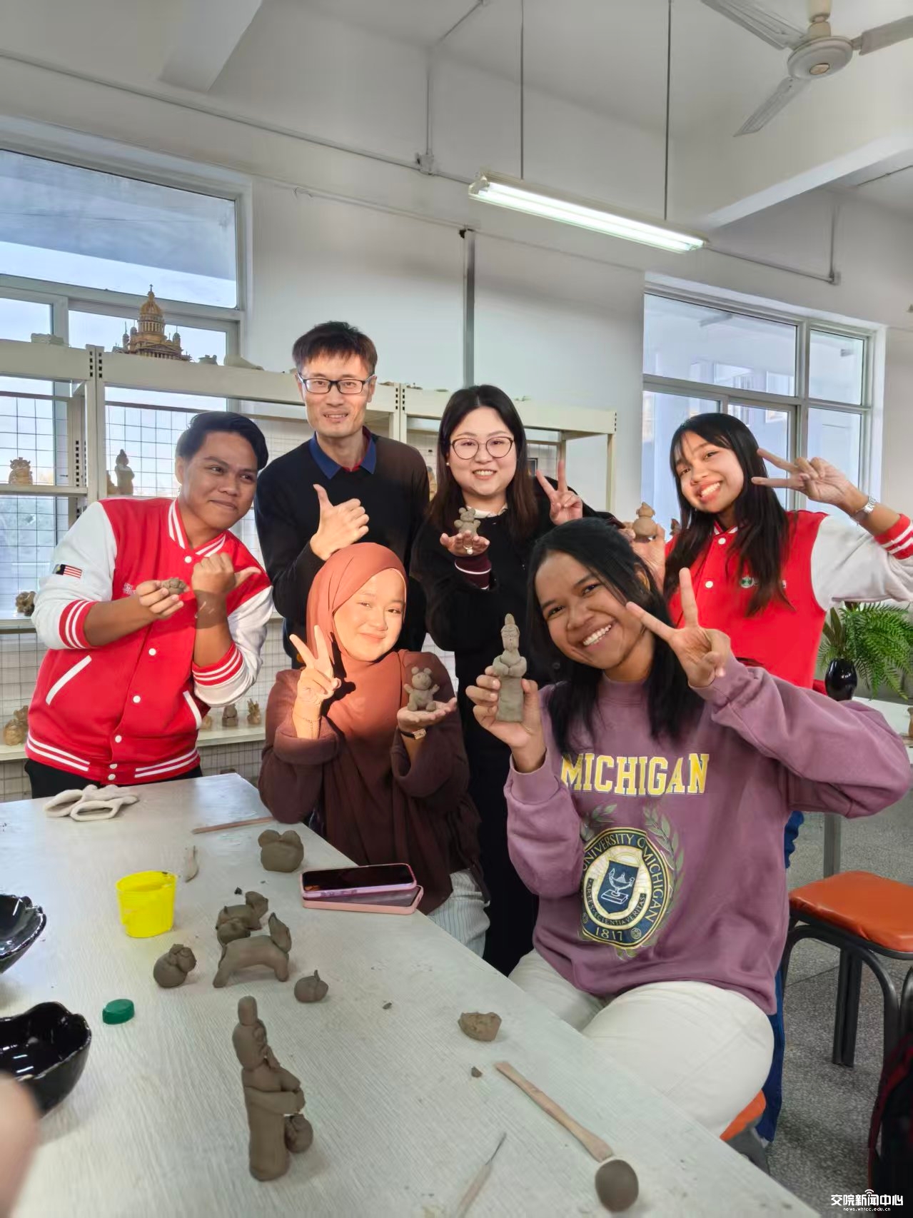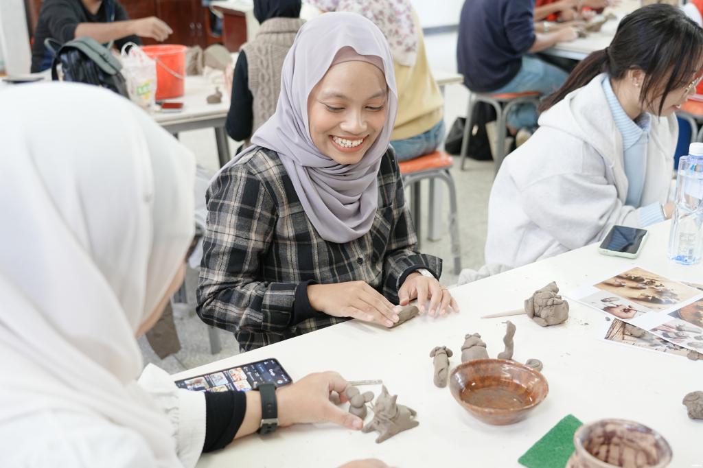 此次陶艺体验课,艺术设计学院精心组织,巧思妙想,院长尚洁谈到:“泥土相连,文化相通,中马两国师生通过文化和艺术紧密相连,希望这份指尖诞生的情谊与文化记忆,成为他们武汉之行中一段珍贵的印记。”