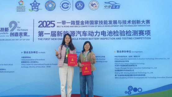 新闻网讯(记者 穆雨 通讯员 唐琼)11月26日,2025一带一路暨金砖国家技能发展与技术创新大赛首届新能源汽车动力电池检验检测赛项全国总决赛在石家庄圆满落幕。我校汽车学院夏伟、唐琼两位教师组成的代表队,与来自全国24个省份的130支队伍同台竞技,凭借精湛的专业技能与默契的团队协作,最终斩获大赛一等奖,充分展现了我校在新能源汽车技术领域扎实的办学实力与卓越的师资水平。