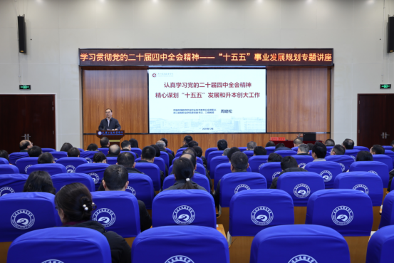 新闻网讯(通讯员 李卓君)为深入学习贯彻党的二十届四中全会精神,推进学校“十五五”事业发展规划编制,12月26日上午,我校在明志楼1号会议室举办学习贯彻党的二十届四中全会精神和“十五五”事业发展规划编制辅导报告。本次报告主讲专家为中国高等教育学会职业技术教育分会理事长、浙江金融职业学院原党委书记周建松教授和江苏省政协委员、江苏省中华职教社副主任、南京工业职业技术大学原党委书记吴学敏研究员,我校全体校领导、全体中层干部、学术机构负责人、内设机构负责人、各教研室主任和专业带头人到场聆听。报告会由党委书记向家文主持。