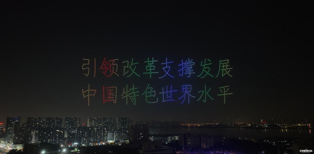 会议结束后,与会领导与嘉宾移步至学校南苑运动场,共同观看了由学校联合企业精心准备的无人机灯光秀技能展示。一千架无人机腾空而起,在夜空中变幻出致远号、交小韵、校徽、“翼起双高 腾飞武交”等绚丽图案和字样,科技感与艺术性完美交融,不仅生动展现了学校将前沿技术融入教学实践、以创新驱动人才培养的丰硕成果,更是一堂激励学子胸怀“国之大者”、锤炼过硬本领、投身强国伟业的沉浸式思政大课,为本次年会画上了圆满的句号。