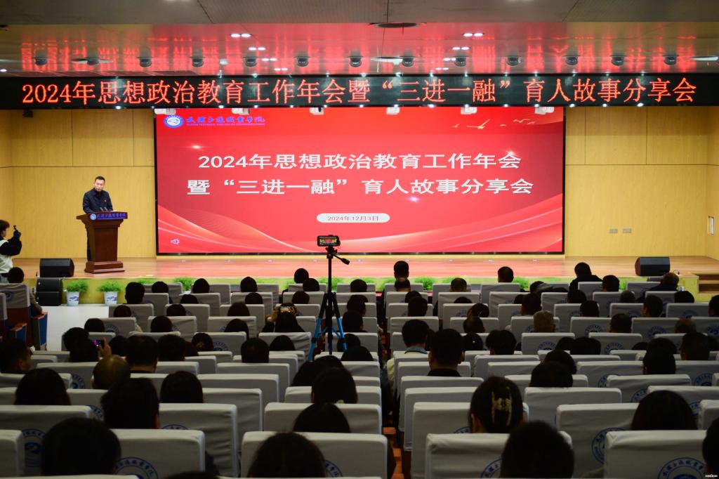 新闻网讯(学生记者 张紫彤 尹陈芯慧)12月3日下午,学校2024年思想政治教育工作年会暨“三进一融”育人故事分享会在尚能楼4楼报告厅隆重举行。校领导,全体中层干部、学术机构负责人,思想导师、职业导师、素质导师和专兼职辅导员及师生代表参会。大会由党委副书记钟辉主持。