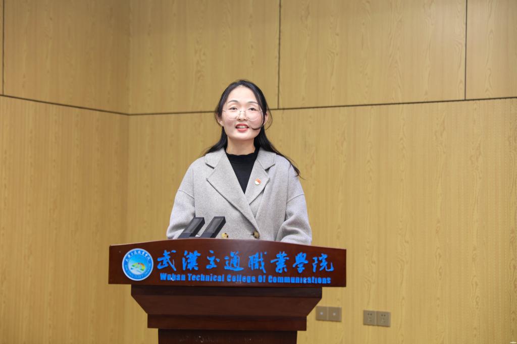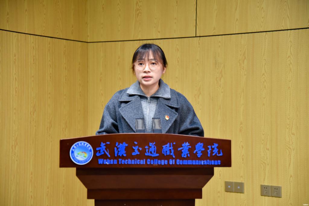 团委书记詹嘉仪作题为《探索共青团“1235”工作体系,打造实践育人“五彩课堂”——关于实践育人成效提升路径思考》的工作交流。她提出,将依托共青团“一心双元三师五维”实践育人工作体系,持续推动将思政教育润物细无声地融入实践育人全过程,用“党史红、文化紫、志愿橙、科技蓝、军旅绿”的五彩画笔绘就武交院青年的多彩人生。