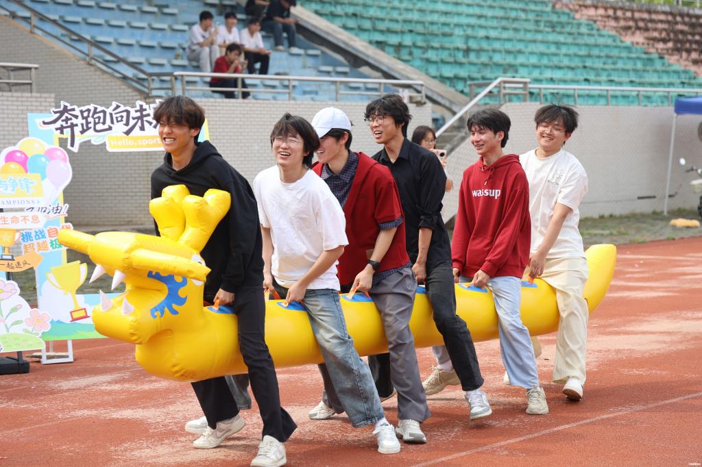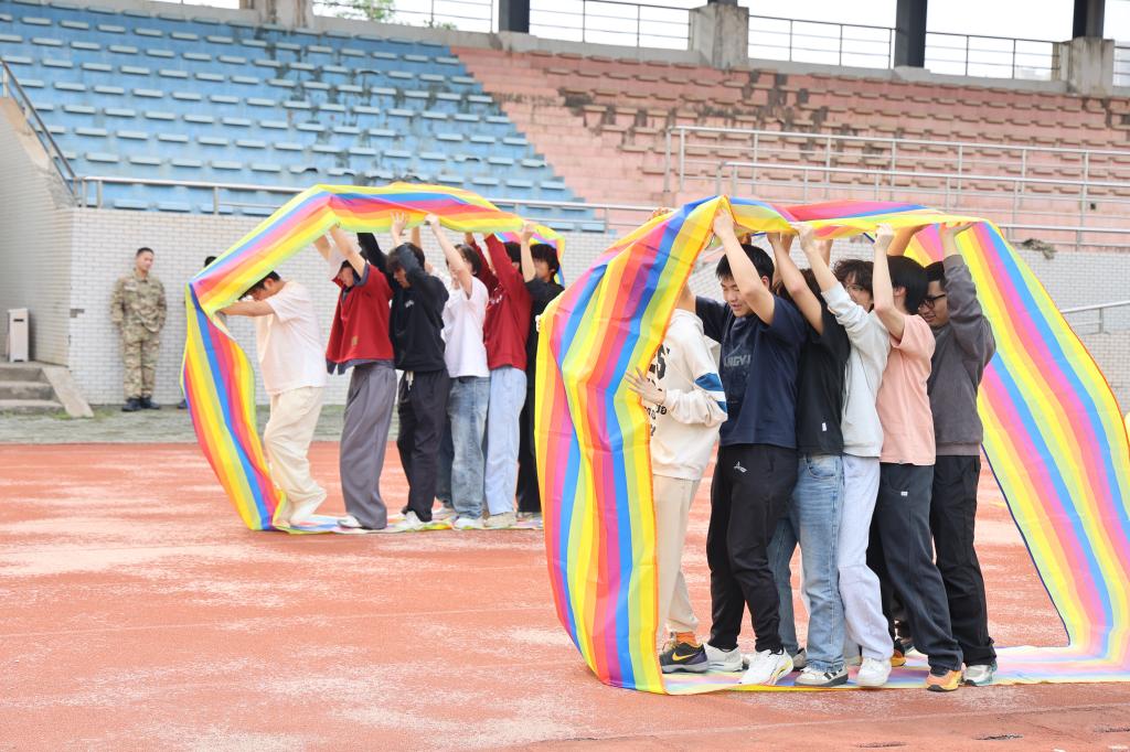 师生全程并肩作战、相互鼓劲,从“珠行万里”的细致配合到“旱地龙舟”的节奏统一,再到“履带战车”的协同发力,每一环都彰显着教书育人与立德树人深度融合的和谐图景。