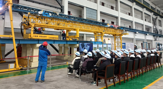在中交二航局桥隧施工技术重点实验室,师生通过预制装配式桥梁一体化架桥机的试验样机的实操过程,结合智能监测系统实时采集架桥机关键参数等环节,让学生掌握架桥机吊运安装预制梁体、桥面板和预制墩柱等桥梁预制件的关键技术要点。