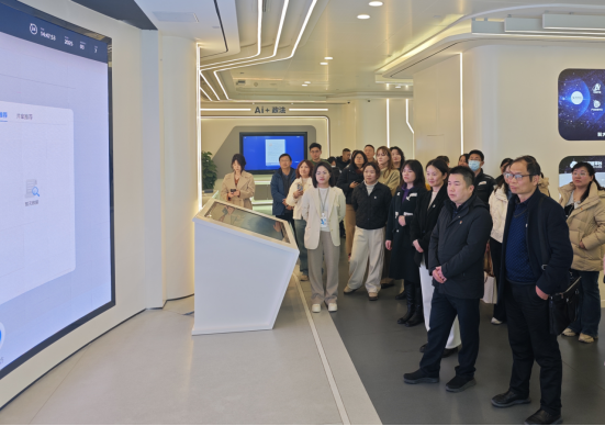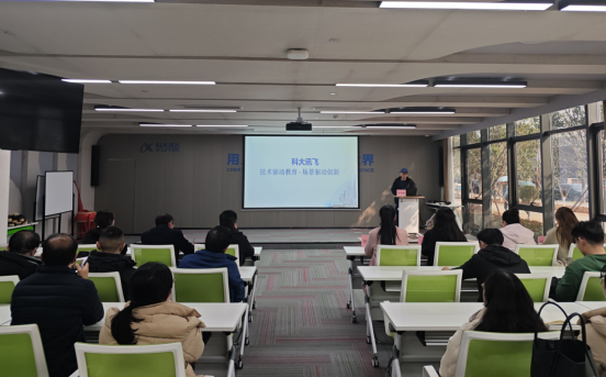 科大讯飞客户经理陈一嫚带领全体教师党员参观了科大讯飞华中总部展厅,介绍了AI人工智能在办公、汽车、教育、医疗、工业等领域的运用,并就相关应用进行了现场演示。