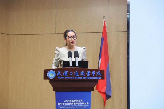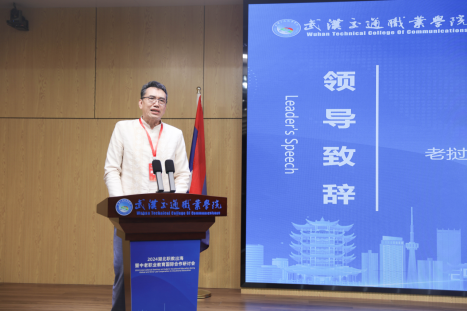 湖北省教育厅副厅长周启红致辞。周启红表示,省教育厅深入贯彻落实党中央、教育部、省委省政府关于职业教育对外开放的重大战略,将职业教育对外开放作为教育强省建设的重要任务之一,着力实施“职教出海”工程。希望以此次研讨会为契机,进一步推动中老职业教育合作走深走实,助力构建湖北新时代职业教育体系新生态。