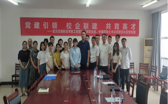 中建四局土木工程有限公司武汉片区党支部书记刘盈和工程管理教研室教师党支部书记严晓红代表两个党支部签订了“党建引擎、校企联建、共育英才”校企党建共建协议书。