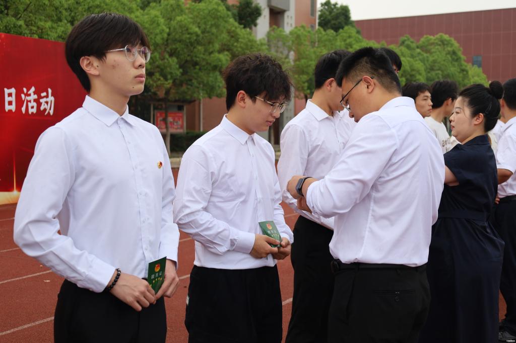 各学院团总支书记为新发展团员代表佩戴团徽和颁发团员证。