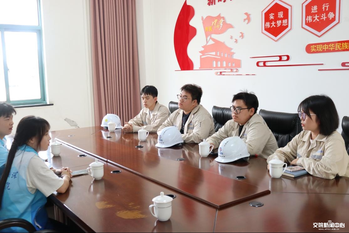 随后,实践团看望了正在公司实习和工作的学长学姐们,大家向学长学姐们积极请教在船厂工作的体会、校园到职场的过渡经验及学习建议。22级陈萱苇热情分享了参加工作后面临的挑战和成长,她鼓励学弟学妹们要一直保持学习的热情,在新技术、新工艺、新规范层出不穷的当下,原地踏步就意味着落后,期待未来能在轰鸣的船台边看到大家拼搏的身影。