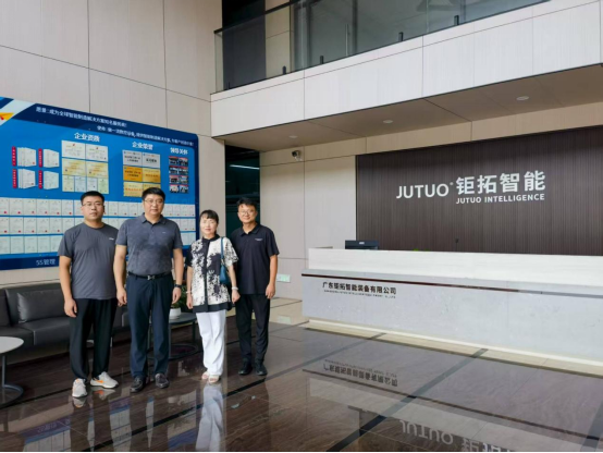 新闻网讯( 记者 颜俊 邓俊芬)2025年8月3日,学院院长帅海燕、副院长颜俊、先进制造教研室主任刘靖等一行赴广东韶关,对2000届优秀校友黄和言创办的广东钜拓智能装备有限公司开展专题调研。深圳校友会会长付理慧一同参与交流。