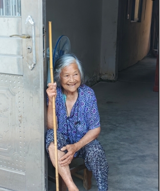 曾玉兰老奶奶今年90岁高龄了,听说要拍照特意换上了女儿给她买的新衬衫,起初面对镜头时有些拘谨,志愿者搀扶着她来到门前用亲切的话语、幽默的笑话逗得老人喜笑颜开,自然的笑容被镜头定格。