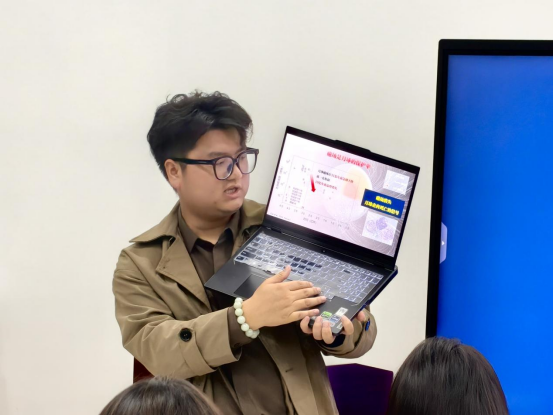 互动环节中,学员们围绕“怎样优化PPT结构与视觉层次”“如何找到适合自己的参赛选题”“如何合理规划、调整备赛周期”等问题踊跃提问。姜昕结合不同赛事特点与评审偏好,一一给予细致解答,并通过实时操作演示,具体讲解了配色、排版、动画等美化技巧的实际应用。整场培训持续近四小时,现场氛围积极,互动深入。