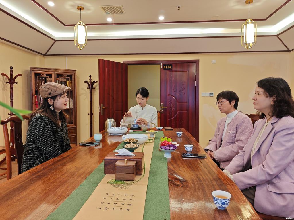 新闻网讯(记者刘勇)为进一步深化产教融合,凝聚校友力量,积极探索协同育人新模式,11月6日上午,交通文旅学院教授鄢向荣、副院长郑斯楣、辅导员刘勇一行前往汉口濮盛祥茶庄,走访看望优秀校友、濮盛祥商务茶庄总经理散霞,并围绕人才培养、校企合作以及茶文化创新传播等重要议题展开座谈交流。