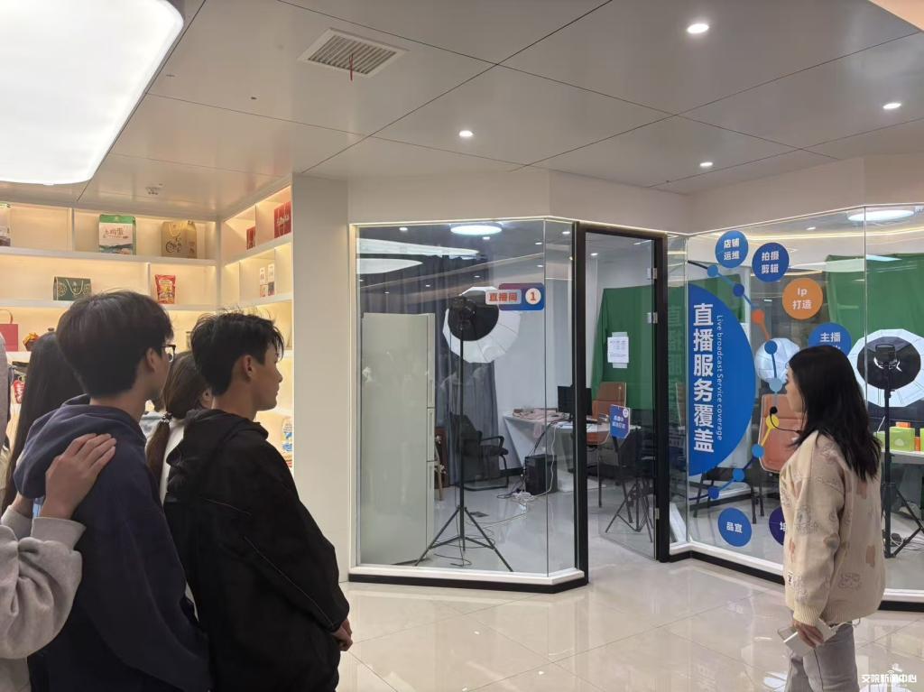 活动现场,风禾集团总经理闫轶携骨干团队对学院师生的到访表示热烈欢迎,并带领大家沉浸式走访企业办公区、实景直播工作室、专业剪辑运营室及项目成果展厅等核心区域,全方位展现企业运作模式与业务生态。