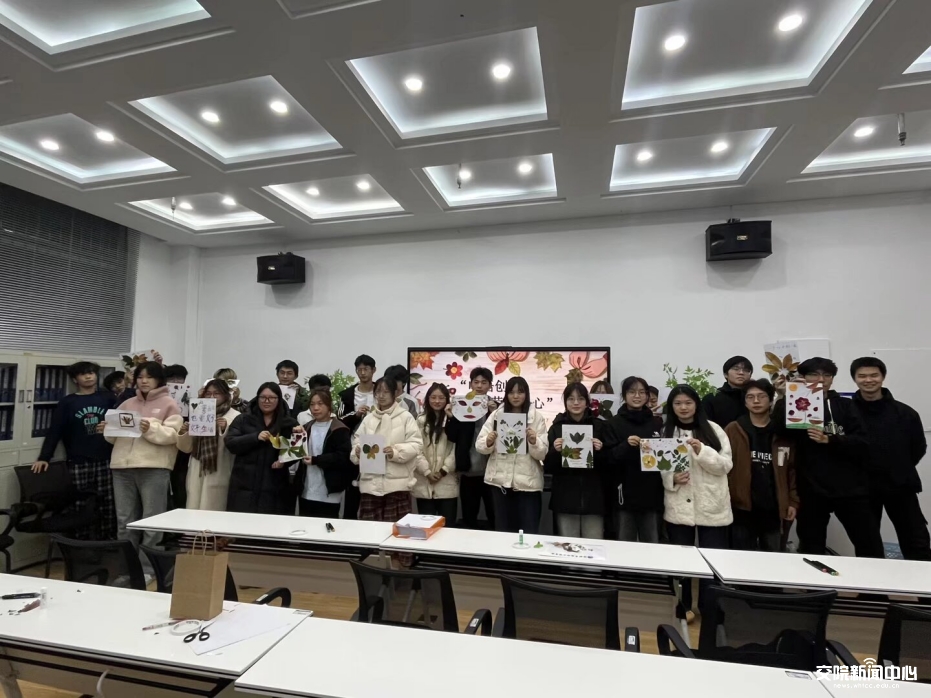 活动最后,全体参与者手持作品合影留念,记录下劳动与心灵交融的美好时刻。本次活动以落叶为载体,将劳动教育、美育与心理健康教育融为一体,既锻炼了学生的动手能力与创新思维,也为其提供了情绪表达与压力疏通的渠道,是学院推动“五育并举”、促进学生全面发展的具体实践。