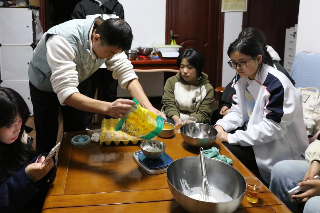 新闻网讯(记者 张雨驰)近日,艺术设计学院的“一站式”学生社区里飘散出阵阵诱人的甜香与欢声笑语。在这里,辅导员徐恒正系着围裙与十几名同学一起,将面粉、鸡蛋与奶油化作了一堂生动的实践课。