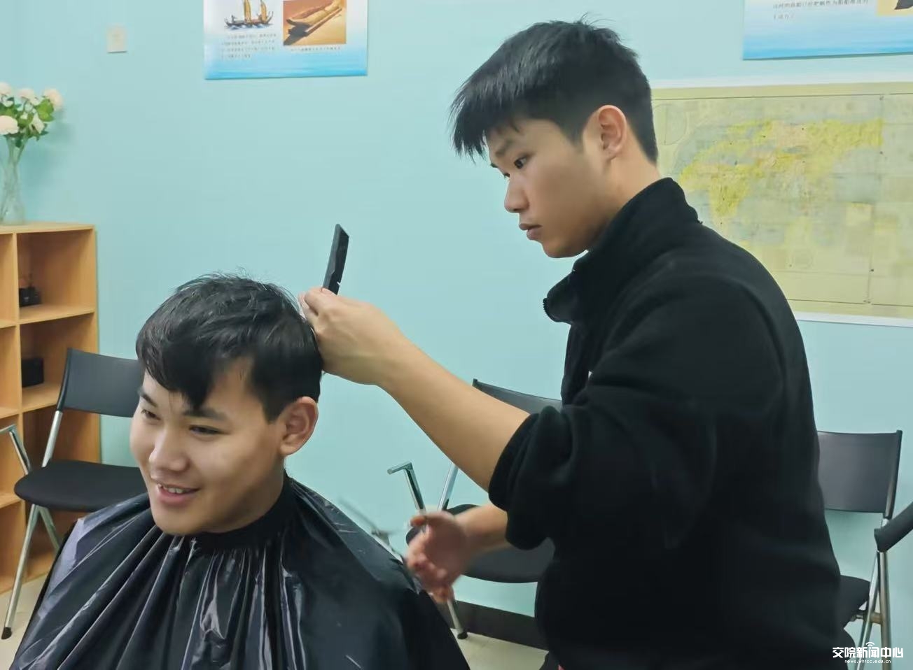 活动前期,学院通过公众号平台发布“爱心义剪招募令”,采取“线上预约+现场快剪”形式,两天内为多名学生提供剪发服务,现场配备专业理发工具,从清洗、修剪到吹风,全流程细致服务,让同学们足不出户焕发新颜。