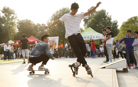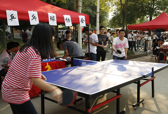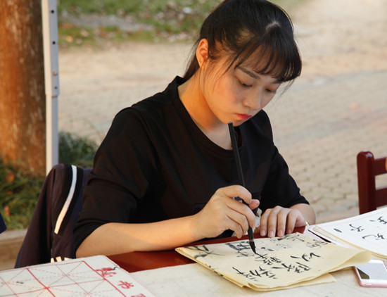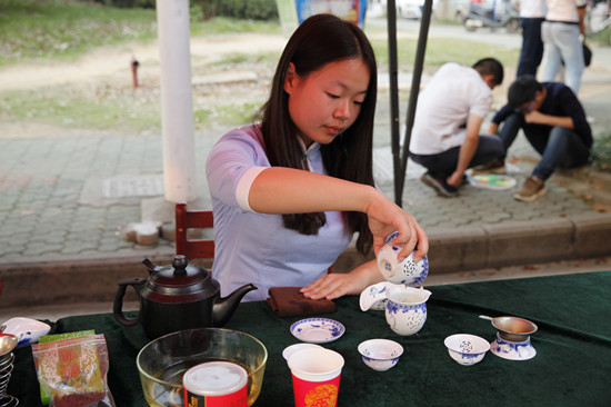 在悠扬的音乐声中,洗茶、冲泡、封壶、分杯、分壶、奉茶,一系列动作如行云流水般,看得新生们不住地夸赞,“以前很少喝茶,今天现场见识了茶艺的魅力,好想加入其中呀”,在茶艺社招新点前品茶的小蒋同学满怀期待。