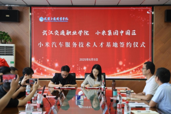 6月5日,武汉交通职业学院与小米集团在图书馆8楼会议室举行校企合作签约仪式,双方正式签署“小米汽车服务技术人才基地”项目合作协议。副校长胡琴、党委学生工作部部长唐安宁、合作交流处副处长吴飞、汽车学院领导班子成员及教研室主任参加签约仪式。小米集团中国区汽车销交服部用户部门负责人田时兵一行莅临参会。仪式由汽车学院党总支书记金松鹤主持。