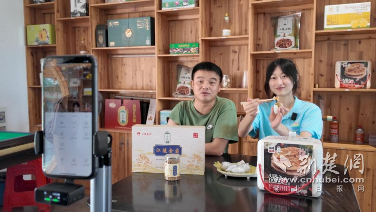 “这道‘鹤歇元宝’美食背后有着一个浪漫传说——传说江陵是仙鹤的故乡,仙鹤在此处歇息时诞下了一枚蛋,这道美食便由此得名。咸蛋黄流油的绵密、糯米拉丝的软糯,每一口都是自然的馈赠……”当地的“吊瓜书记”与实践队员程好用流利的普通话在直播间里热情推介当地特产,吸引大量粉丝来到直播间点赞。