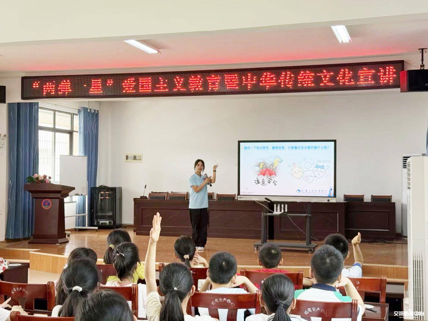 湖北日报讯(记者余军、通讯员牛耘、张理才、鲁睿)近日,武汉交通职业学院交通工程学院“交心筑梦・星核铸魂”志愿宣讲团走进随州市随县三里岗镇小学,通过“两弹一星”精神宣讲、安全知识普及、传统文化体验及八段锦教学等多元活动,为乡村儿童送去知识与关怀,以青春力量助力乡村教育。