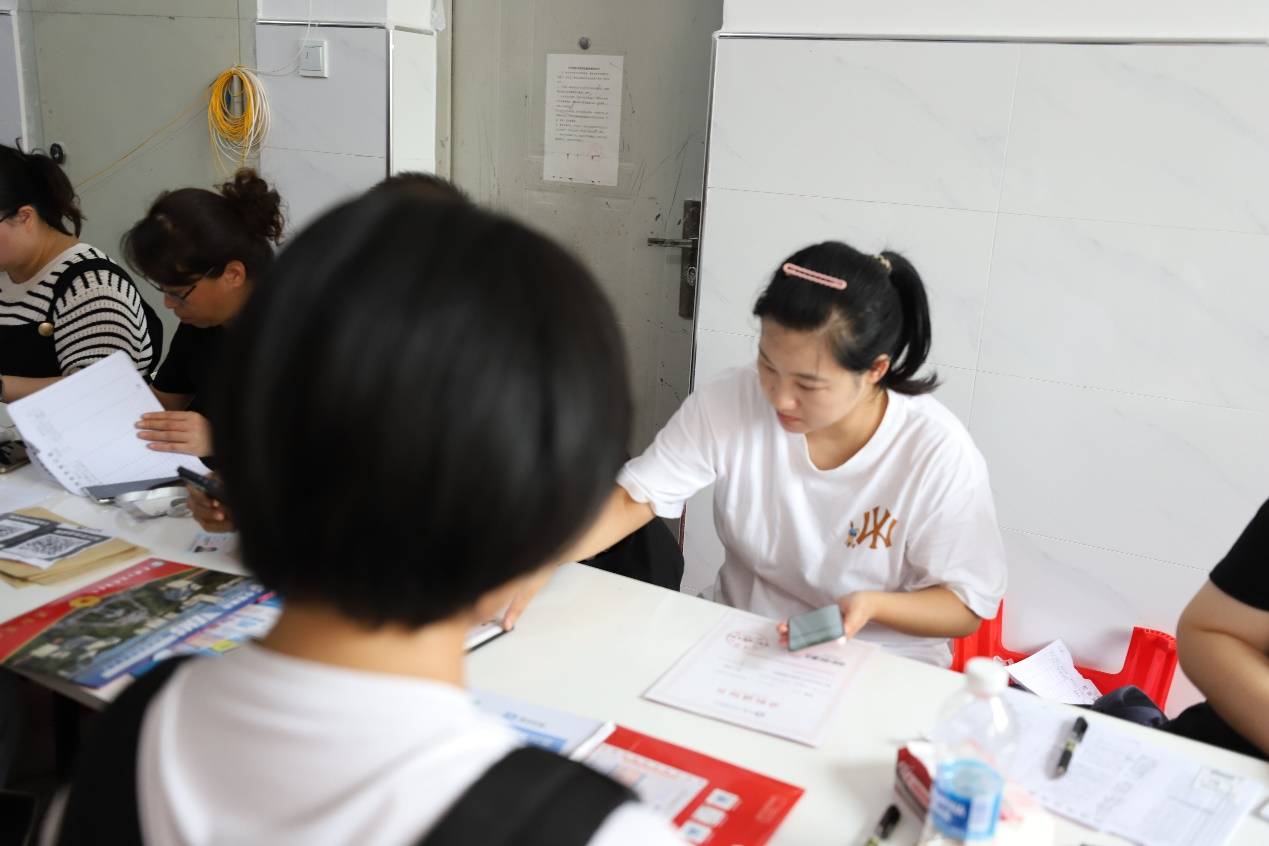 迎新当天,赵琳在大三学姐张岩的带领下,有条不紊地完成了报到流程:核验身份、缴纳费用、领取军装、测量头围、办理校园卡……每一步都透着军营特有的严谨。“这是你的军训帽,先试穿一下尺码是否合适;宿舍在1楼,6名女生住在一起,都是同一届的同学。”张岩耐心地讲解着。