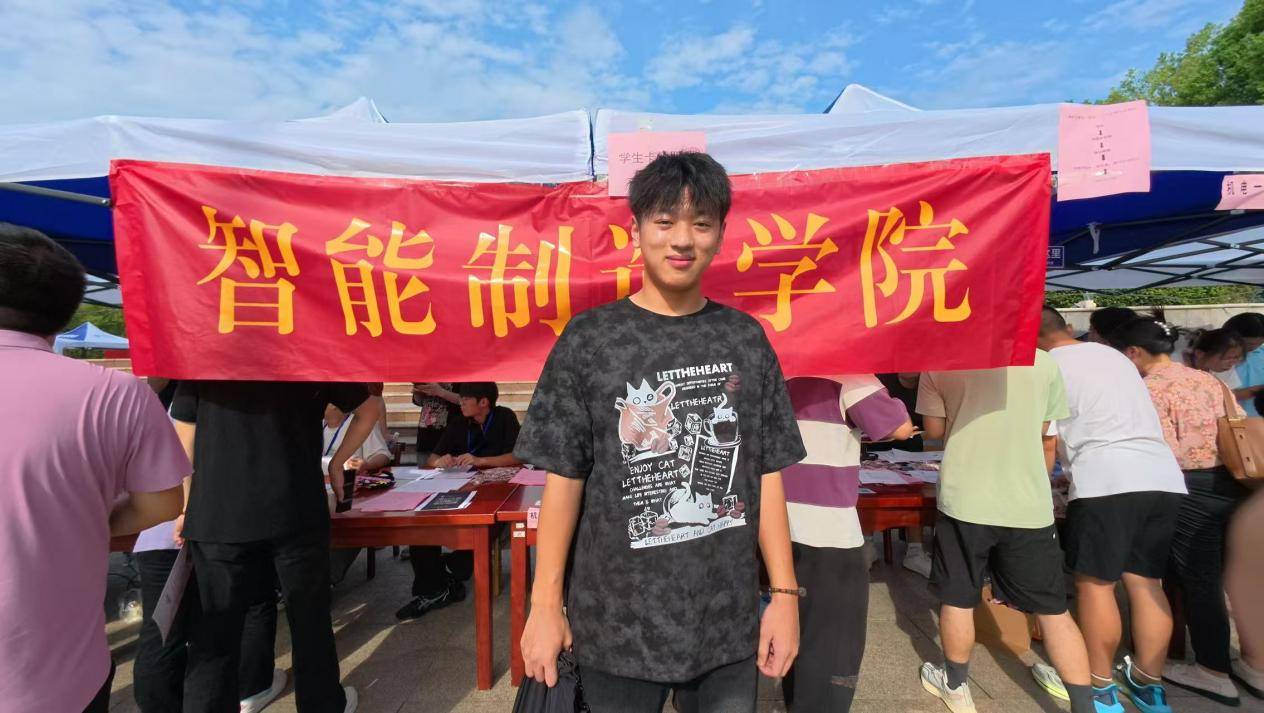 航天装备精密制造专业新生张宇辰在报到现场。