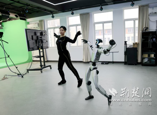 学生进行动捕表演。学校供图