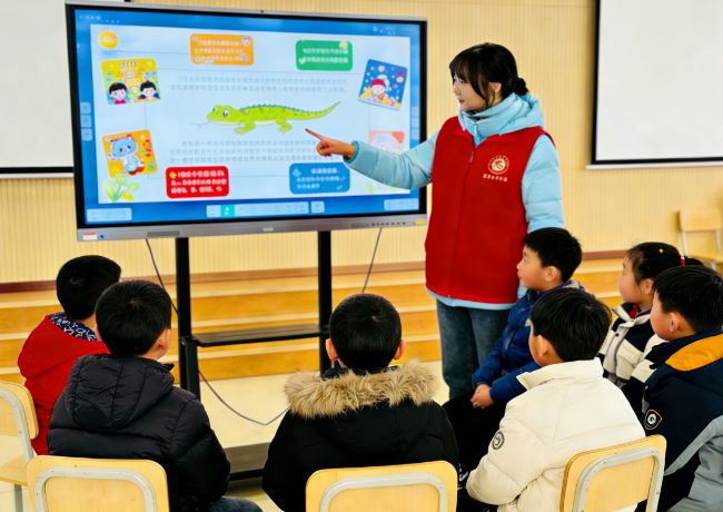 25航海技术1班左佳奇走进爱心托管班,给孩子们上“认识共青团”和“认识航运”课。当他展示航线图时,一个小男孩举起画好的小船说:“我以后也要开大船、守护大海!”那一刻,左佳奇眼眶一热。他说:“我种下的不只是航海梦,更是希望与担当。”