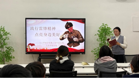 李沐昱老师引导大家深入思考:“作为人工智能专业的学子,不仅要思考‘如何学雷锋’,更要思考‘如何用专业学雷锋’。”她勉励同学们在专业学习中发扬“钉子精神”,用技术服务同学、造福社会,让人工智能服务于人民对美好生活的向往。
