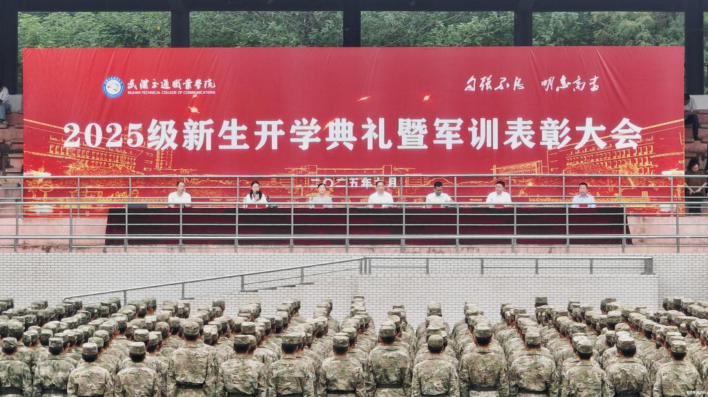 全体师生共唱《武交院之歌》,2025级新生开学典礼暨军训表彰大会圆满结束。