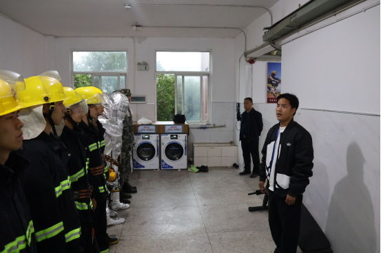 队员们迅速穿戴防护服,携带灭火器、担架等装备,奔赴各自岗位。