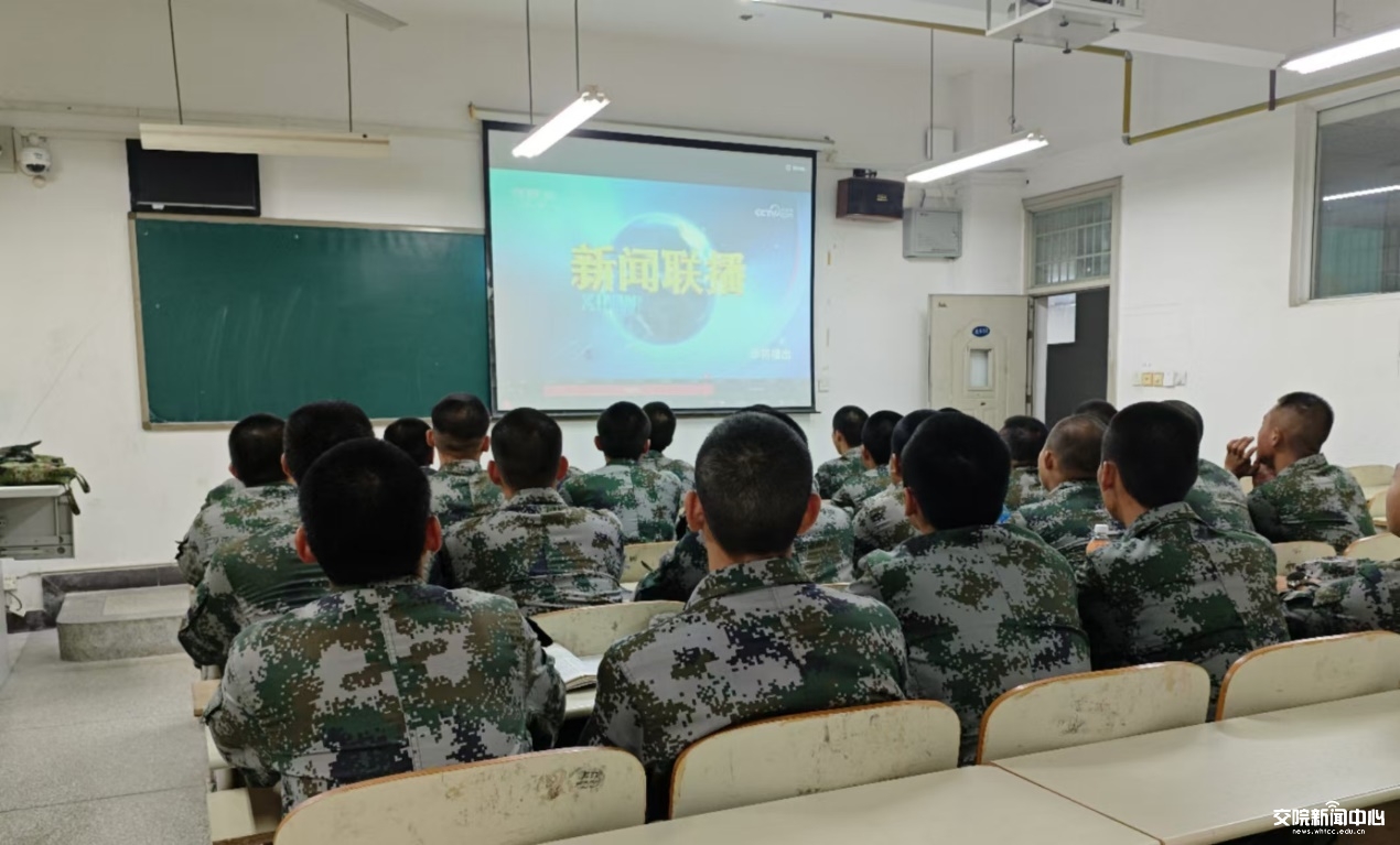 晚自习的时间到了,24计网军士(4)班的大一新生们齐聚一堂,专注地观看关于“联合利剑-2024B”演习的军事新闻。新闻画面中,辽宁号航母编队在台海周边海域执行联合制空和打击演练,歼-20隐身战机、运油-20加油机等先进装备的震撼亮相,直观展示我国军事实力的飞速提升与科技进步。“下面,我们开展新闻点评活动。”在班长龙本太的组织下,同学们纷纷发表自己的看法观点。有的引用“国无防不立”的古训,强调了国防建设的重要性;也有人深入分析此次演习背后的国际局势,指出这一军事行动的重要战略意义。玉朗华同学情绪激昂,表达了对未来投身祖国国防事业的期待与自豪。他说:“作为青年,更作为军士生,我们应当时刻增强国防意识,关心国家安全,努力学习,刻苦训练,牢记人民军队的性质、宗旨、本色,为建设世界一流军队添砖加瓦、贡献力量。”这场别具风格的“新闻课堂”让新生们对爱国主义精神有了更深刻严肃的认识。